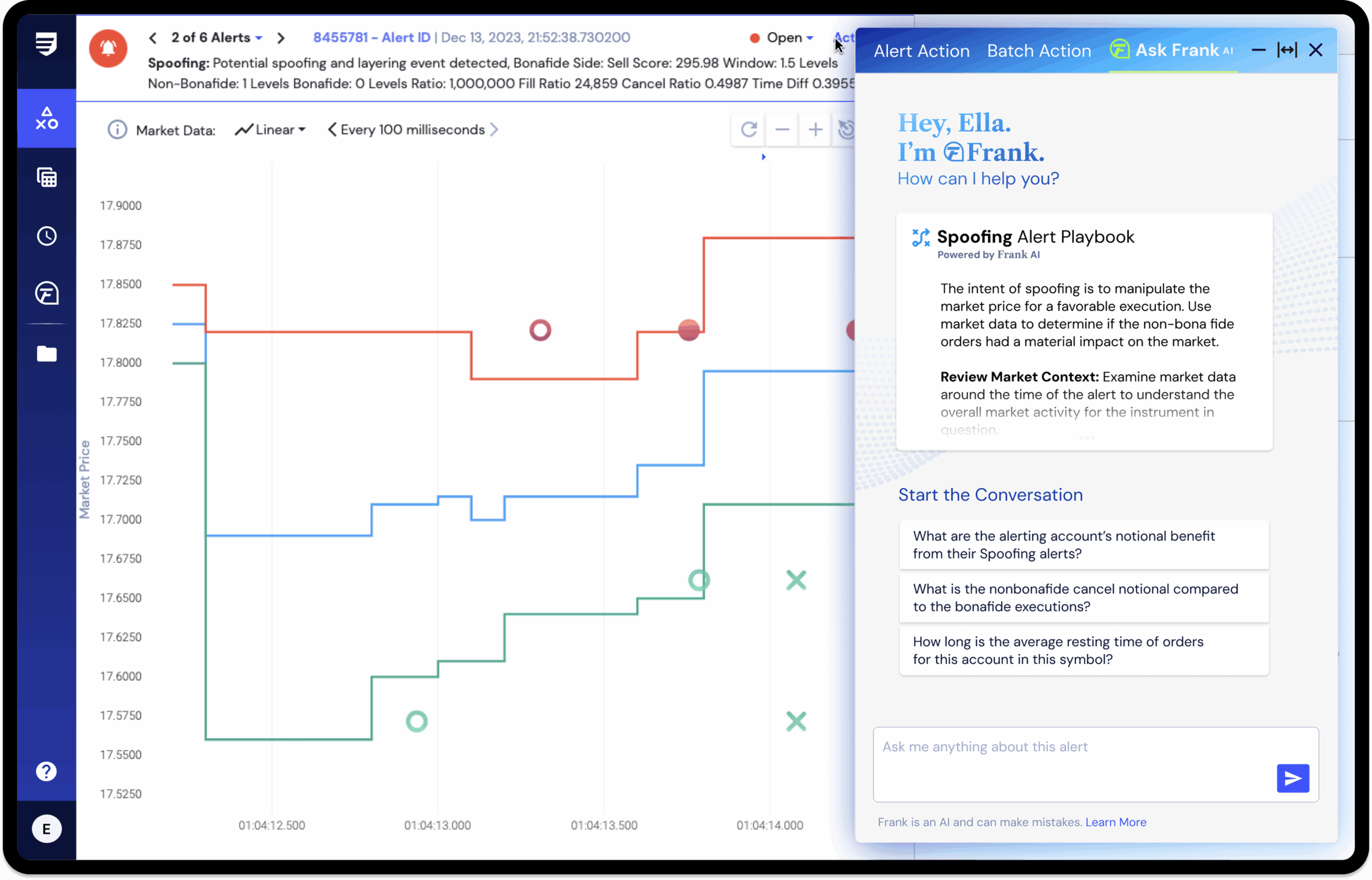 Ask questions like “Show me all wash trades in the last 7 days.”