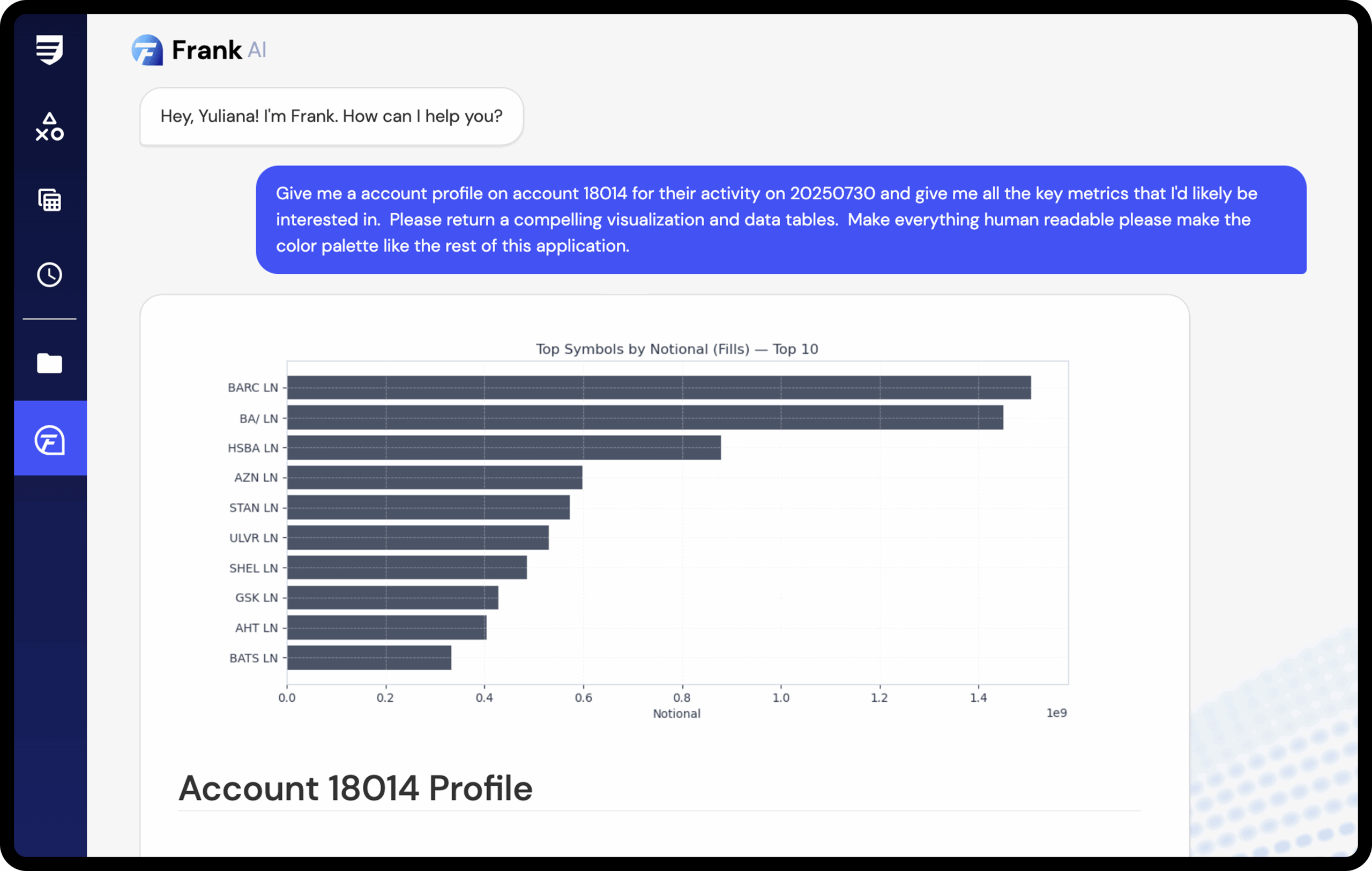 Frank AI sets a new standard for responsible AI in financial compliance. Unlike black-box generative models, Frank delivers deterministic, repeatable results you can trust—and regulators can verify. Ask complex questions in plain English, and get clear, secure answers, every time.